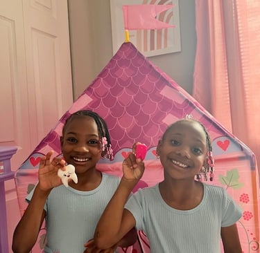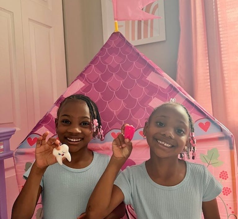 But while Isis was celebrating, her twin sister Amina sat nearby, visibly upset. Her teeth had come in a few months later than Isis’s, and she had no loose teeth of her own yet. She asked, “Why don’t I have any loose teeth?” Her disappointment was real—and as a mother, I wanted to make sure she still felt included without undermining her future moment of celebration.